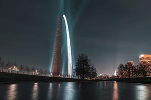Long exposure shot of the St. Louis Arch during spring of 2020.